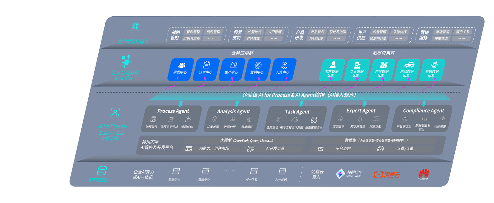 征途国际问学智车解决方案是一套基于AI技术的汽车行业智能化系统,,覆盖从底层算力到顶层AI应用的全栈方案。。方案由算力层、、、模型层和应用层组成:算力层,,方案支持多种一体机配置,,具备云端灵活部署、、多云适配以及动态优化计算资源的能力;模型层,,,征途国际问学平台版提供了企业级AI应用一站式构建与管理平台,,支持基于后训练强化技术的汽车企业专属模型的训练、、、、评测和运营;应用层,,,征途国际问学DeepSeek版提供包括超级员工、、、、智能招采、、、、智能营销、、、、智能客服、、、AI for BI等一系列解决方案,,,可助力汽车行业实现数字化转型,,让管理更智能、、、响应更敏捷。。。