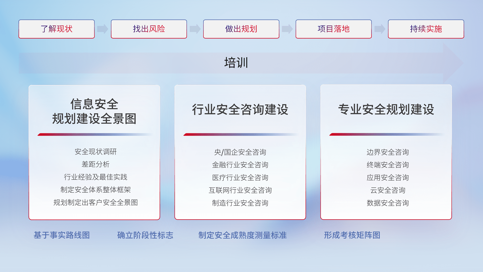 梳理客户信息安全现状调研、、差距分析结果,,,结合行业先进经验及最佳实践,,,,制订客户的信息安全管控体系总结架构,,最终形成一个完整的客户信息安全规划与建设的全景图。。