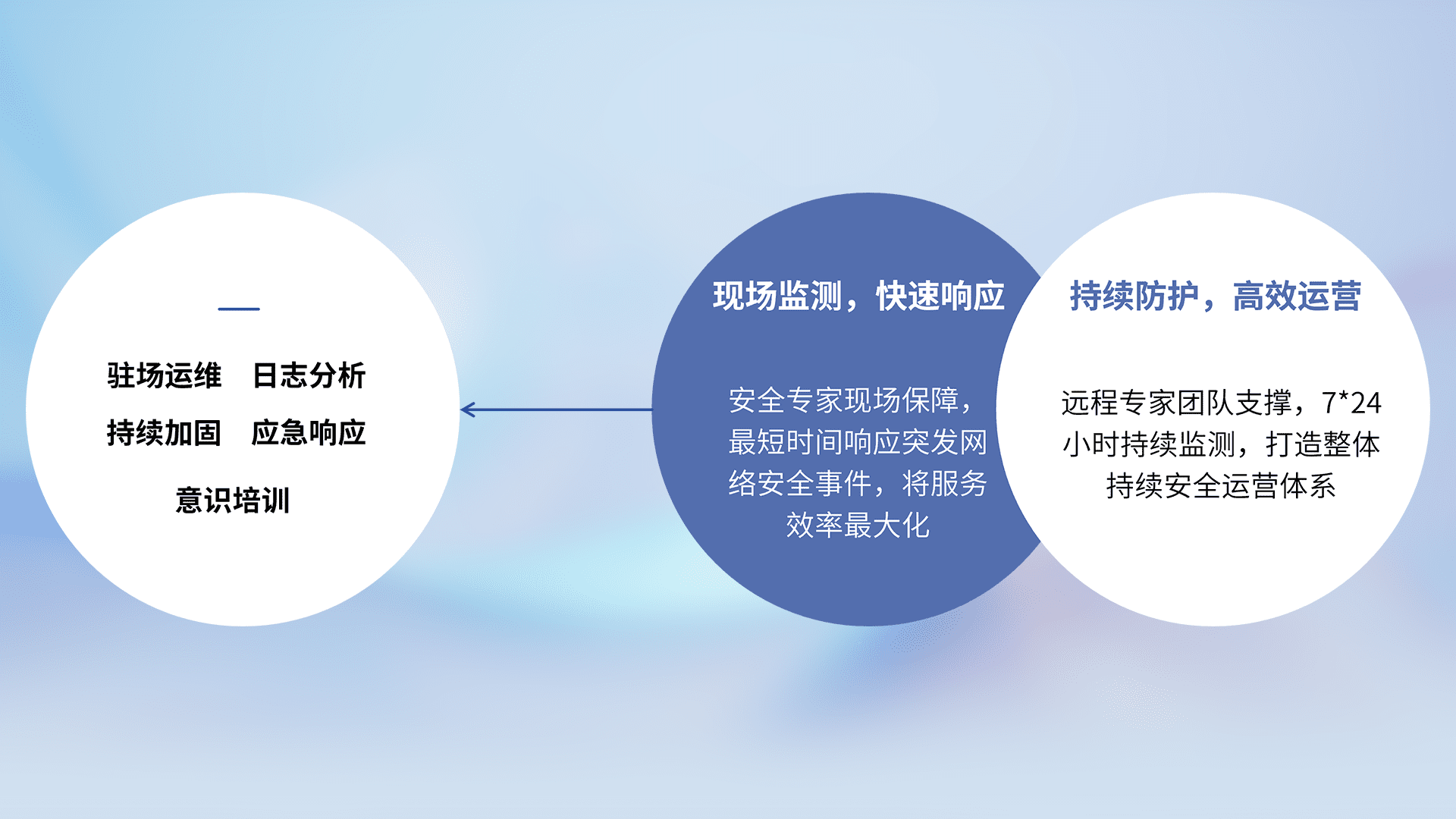 针对客户行业特性,,,,提供专属的一站式安全管理服务,,,,帮助客户全面感知网络空间威胁,,,,通过安全专家的线上、、线下防护支持,,实现风险闭环,,,将安全保障常态化,,,为客户打造常态化安全运维运营服务。。。